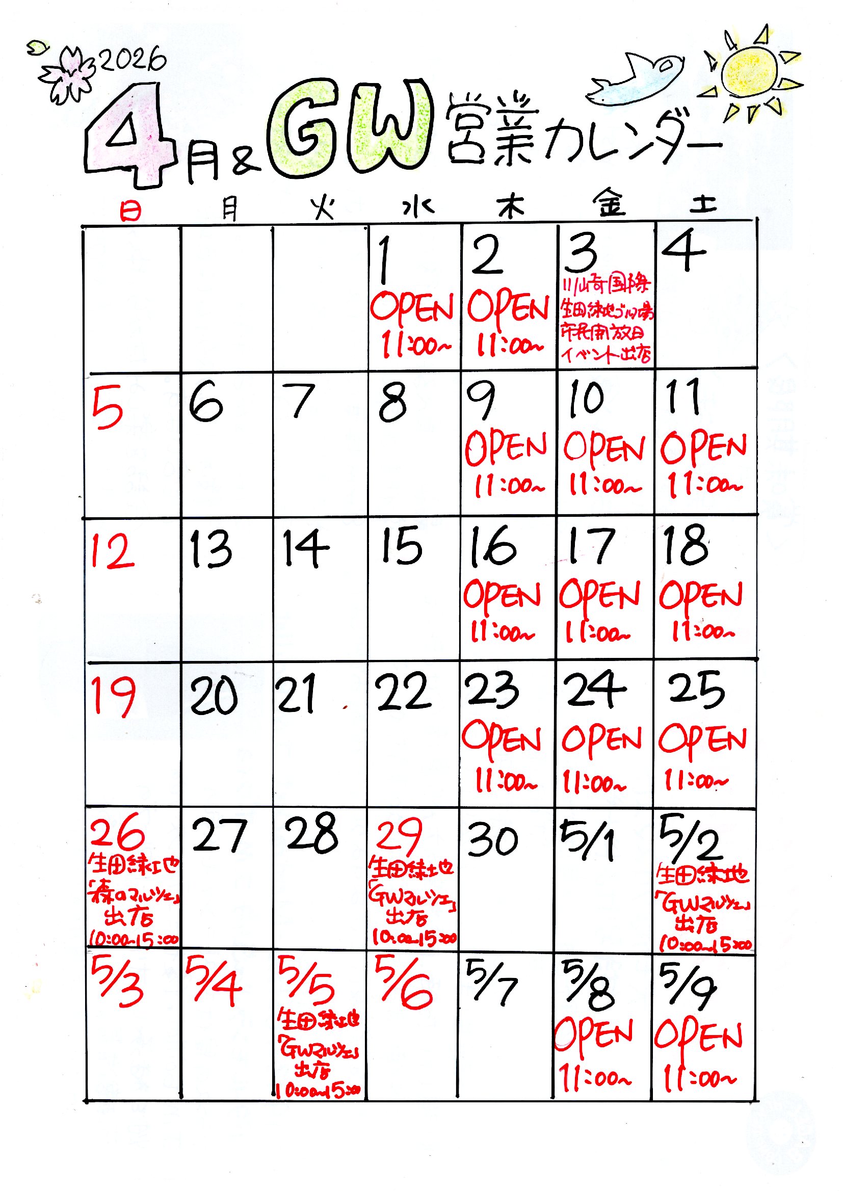 GWの営業についてお知らせです。